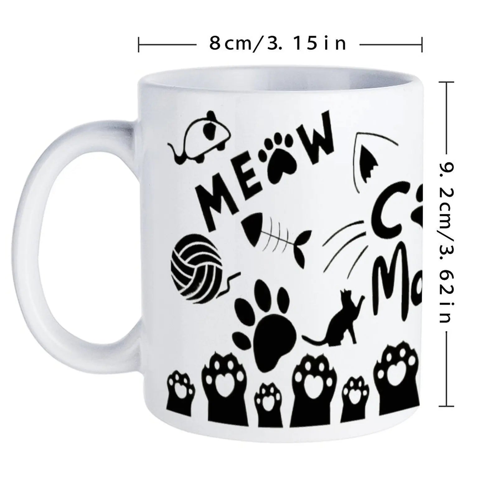 Silhouette Of A Cat's Paw Prints With The Words Meow Cat Mom, 11oz Mugs for Casual Outfits